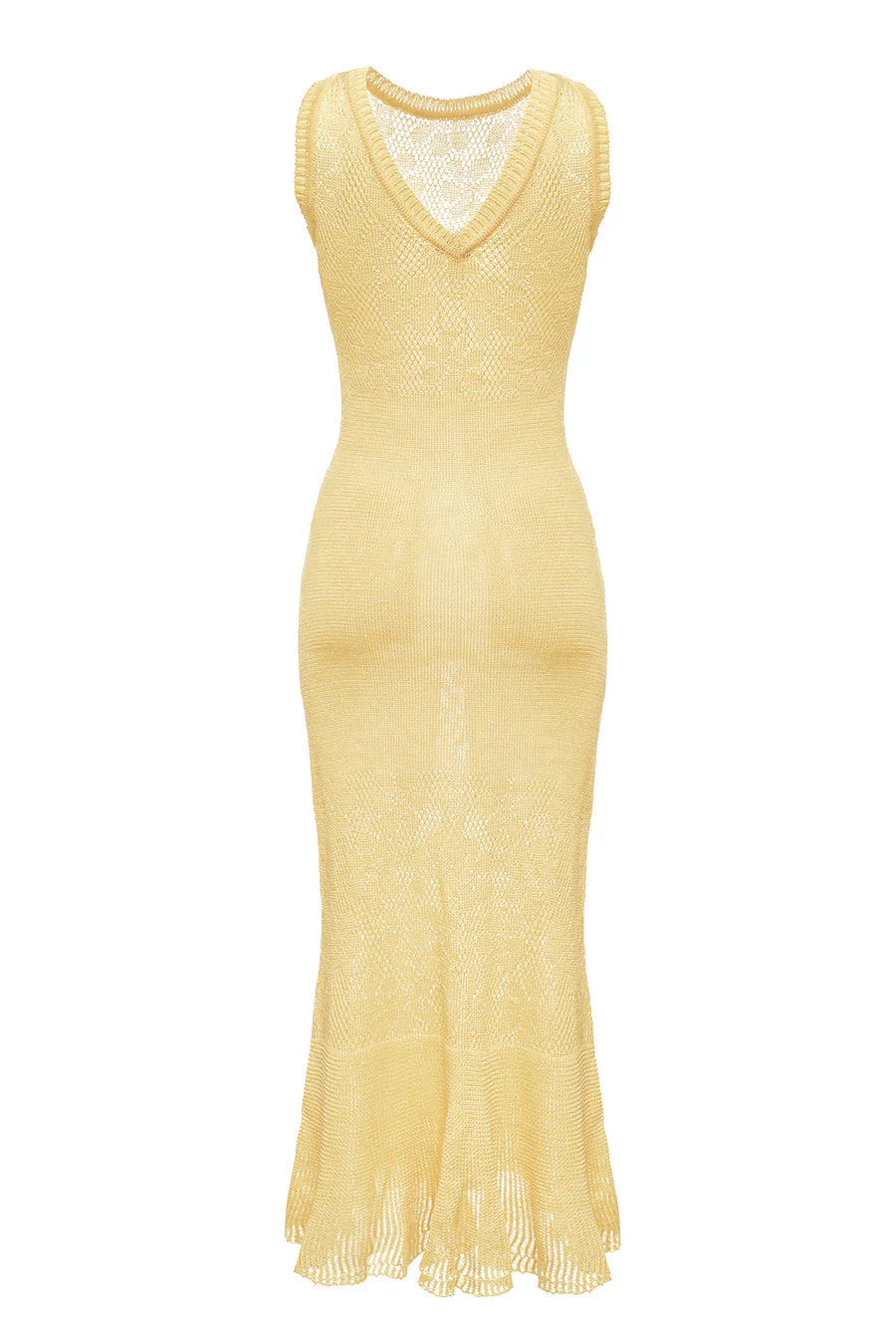 Butter Yellow Knit Midi Dress with Feathers