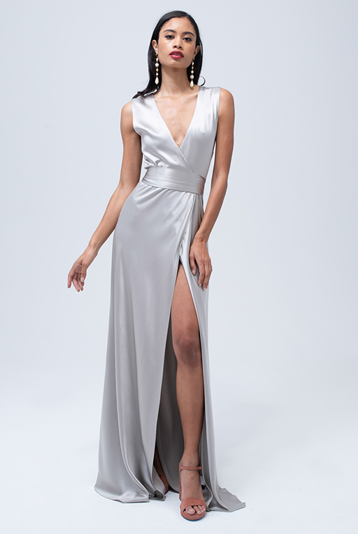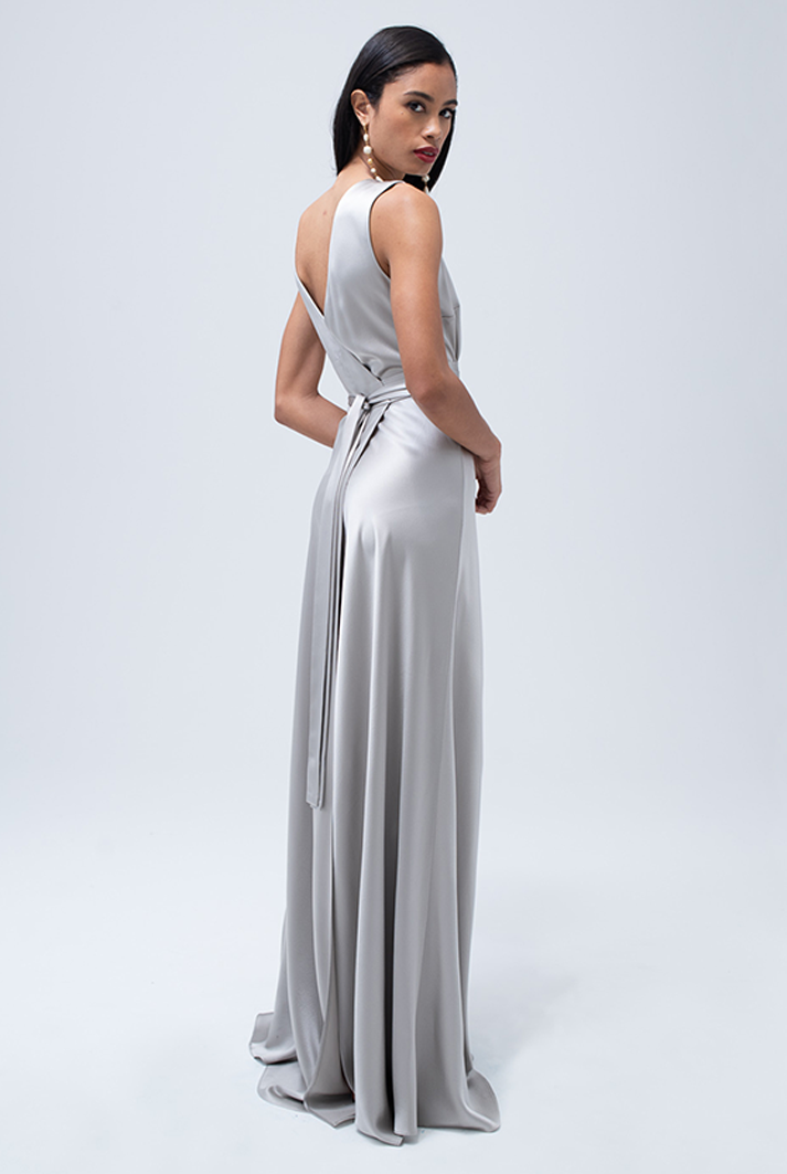 This beautiful charmeuse silk dress is a timeless statement piece. It is reversible and can be worn forwards or backwards.