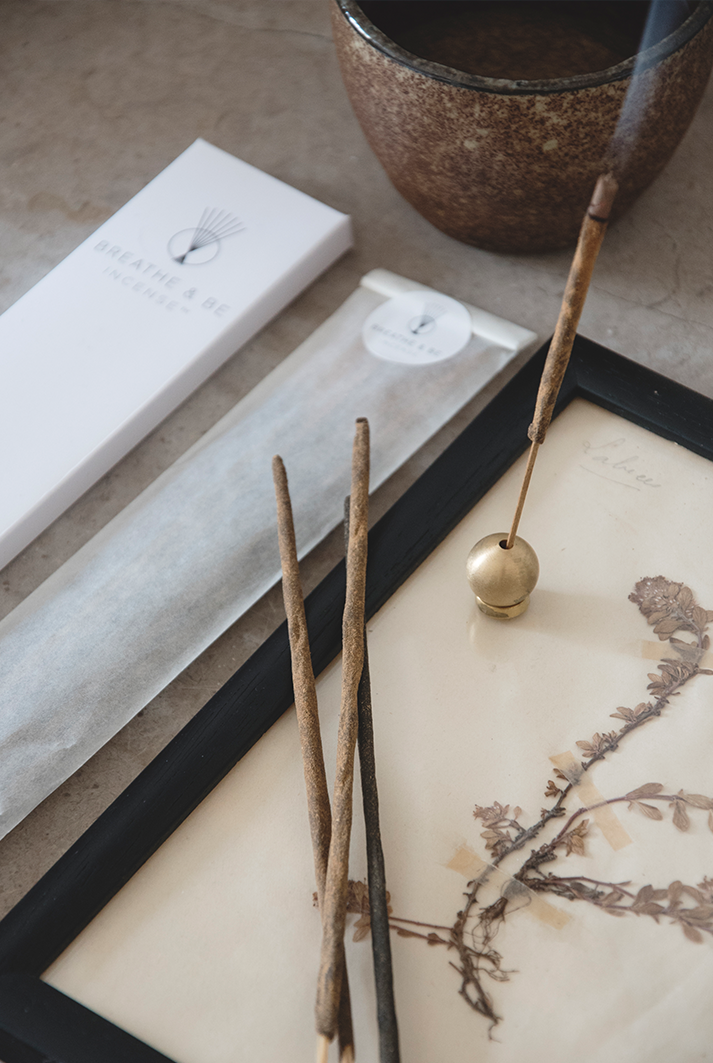 Taking a deep breathe, we encourage you to pause, connect and reset. Light the tip of the incense. When glowing, blow out the flame and place in a suitable holder. Inhale a breath of divine bliss
